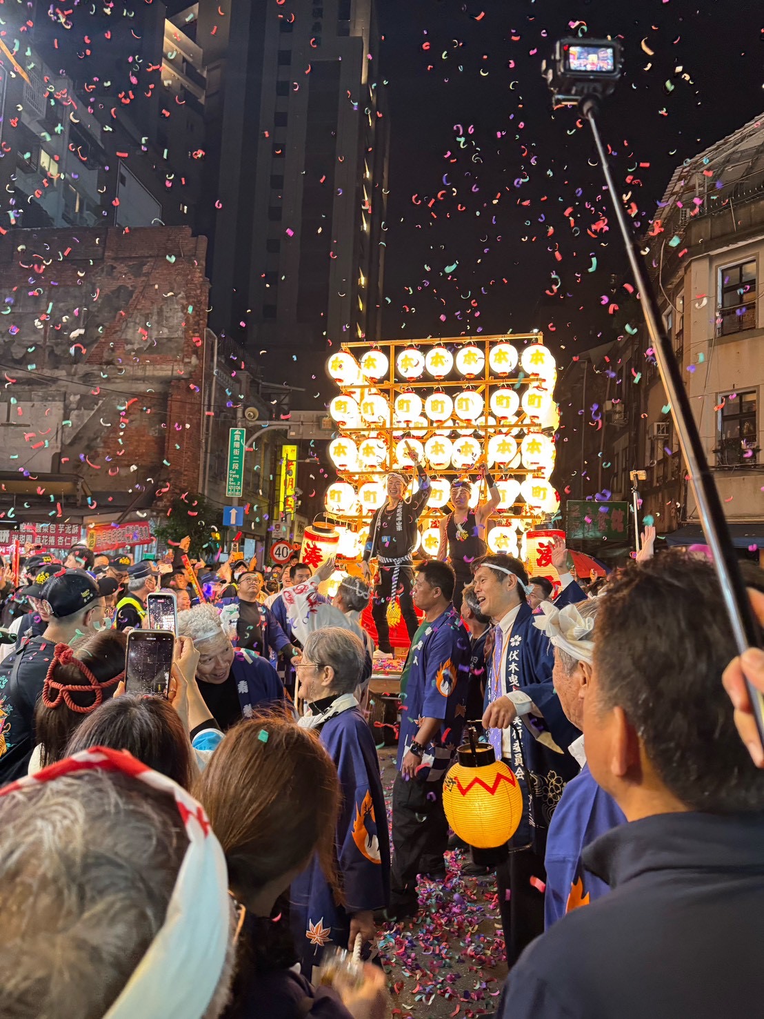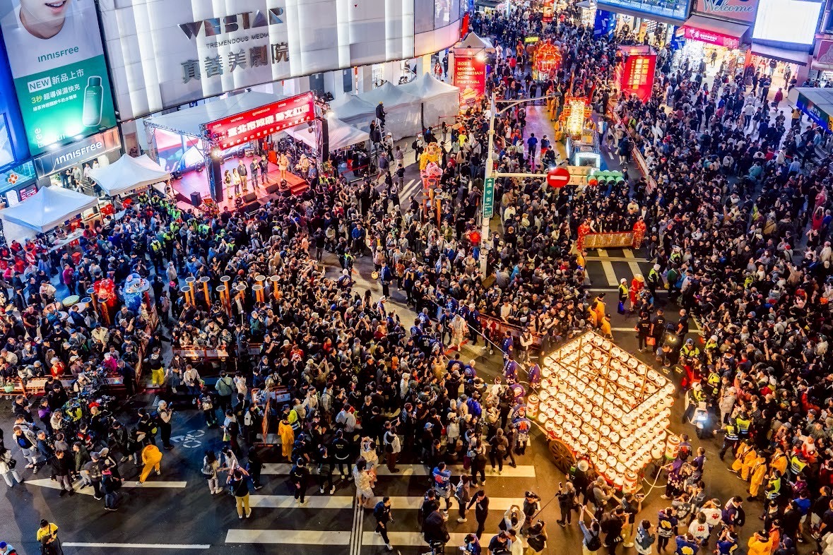 夜の青山王祭では現地の皆さまとともに祭りの熱気とにぎわいを体感し、互いの繁栄を願う「弥栄」を台湾の夜空に響かせました。台北の伝統ある祭礼文化に触れながら、伏木曳山の曳山文化を紹介することで、相互理解と友好を深める有意義な交流の場となりました。